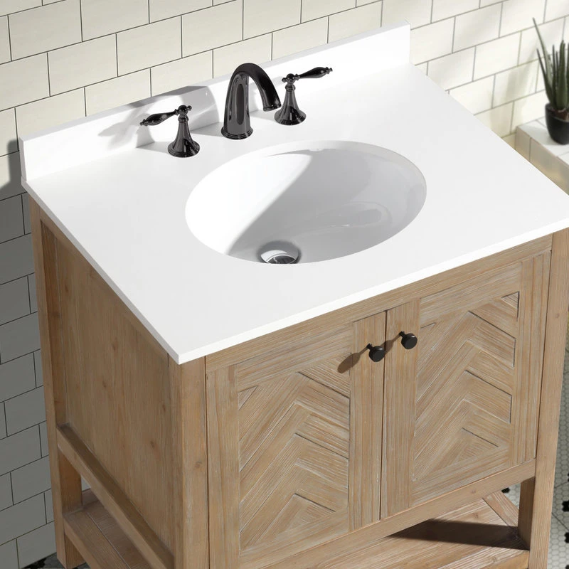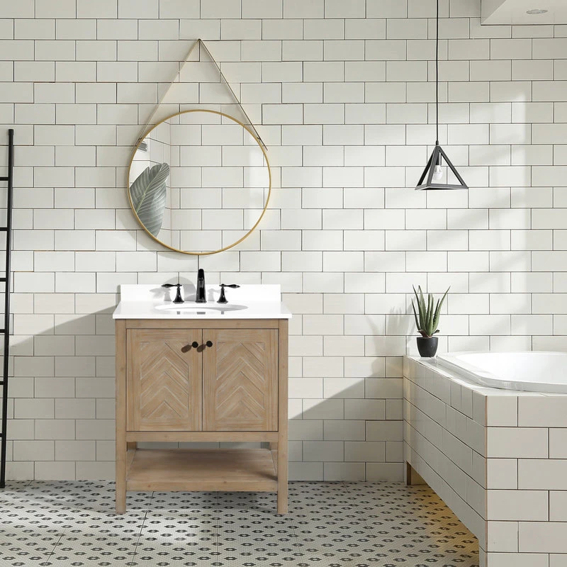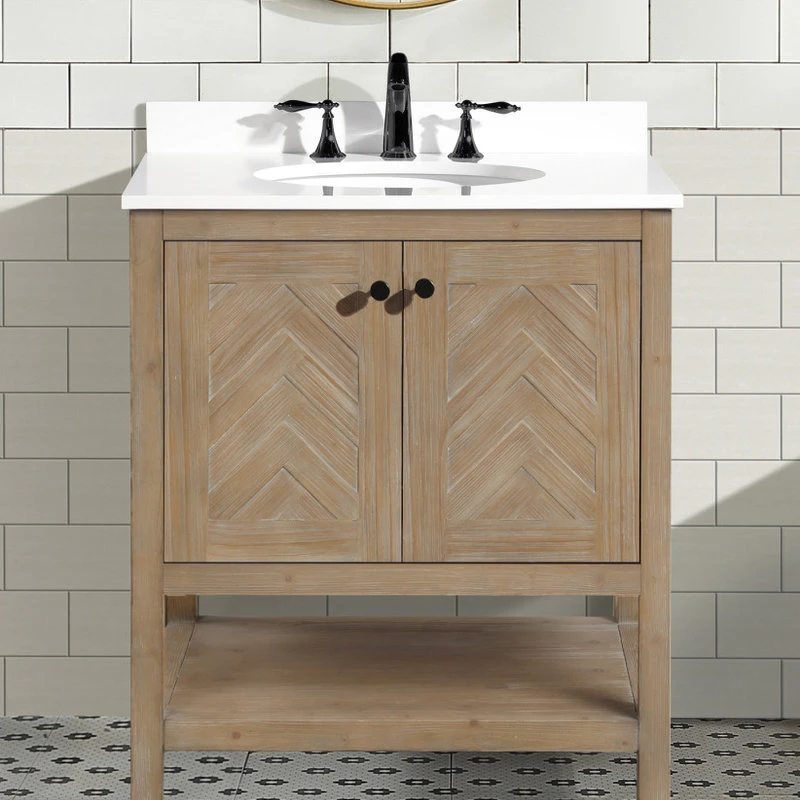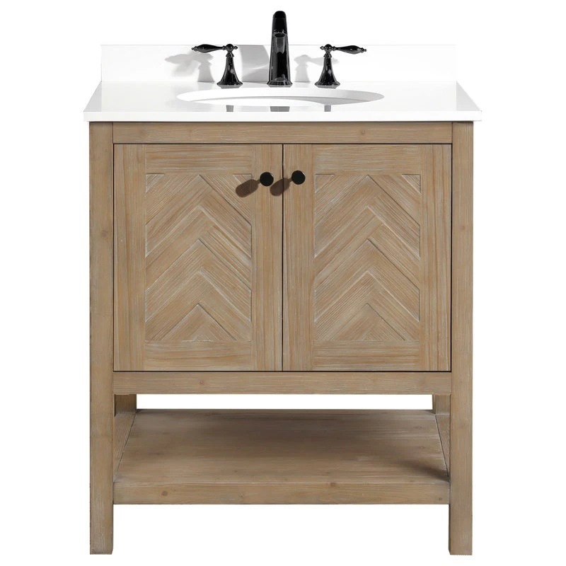 The 30″ Savannah single sink bathroom vanity will be the centerpiece of your bathroom remodel. Skillfully constructed of 100% solid fir wood to last a lifetime. Wood is skillfully finished with raised grain to give a distressed and reclaim wood look. One solid wood dovetail drawer with full extension glides gives you all the necessary storage room for your daily toiletries, coupled with a quartz countertop.