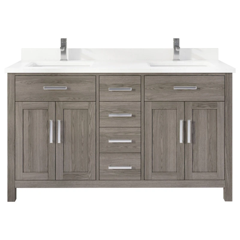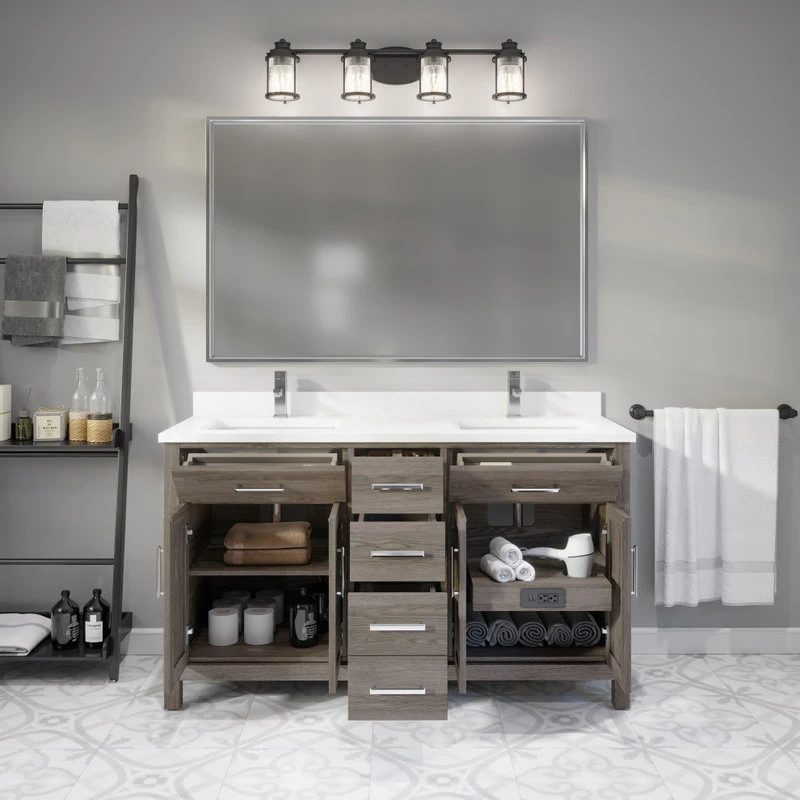 Kali rustic style vanity is a blend of both contemporary and classical pattern, constructed to highlight the premium solid wood material that shines through for an aesthetic finish. The vanity is built for the present-day bathroom needs with its removable organizers that gives you ample storage space, to its built-in power outlet that provide power to various electric devices.