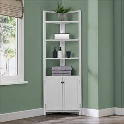 Bolton Furniture, Inc. Dover 25″W X 68″H Corner Storage Cabinet, 2 Doors And Open Shelving