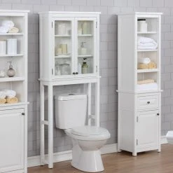 Bolton Furniture, Inc. Dorset Bath Over The Toilet Space Saver Storage, Glass Doors Upper Cabinet