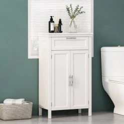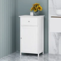 GDFStudio Meader Bathroom Floor Storage Cabinet With Drawer, White
