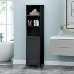 Fresca Black Bathroom Linen Side Cabinet With 2 Open Storage Areas, Teak