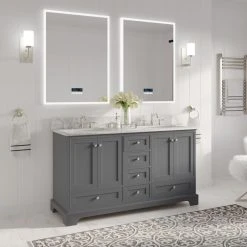 MOD Cascade Bath Vanity, Sapphire Gray, 60″, Brushed Nickel Hardware, Double, Freestanding