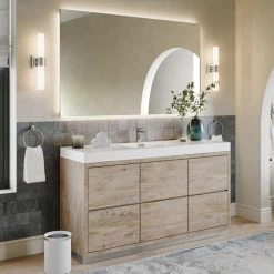 MOD Boutique Bath Vanity, Natural Wood, 60″, Single Sink, Freestanding