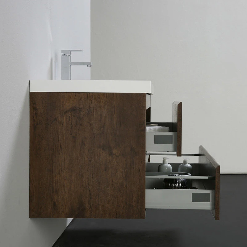 Make a splash in your washroom with the ultra modern MOB Wall-Mount Vanity. This vanity boasts crisp lines and minimal detailing for a chic update in your jack-and-jill bath or en suite. Soft-closing hardware prevents slamming, making for a safer, quieter and longer-lasting vanity. The MOB Vanity was meticulously crafted with daily use in mind, giving you a hard-wearing, functional piece that withstands passing trends.