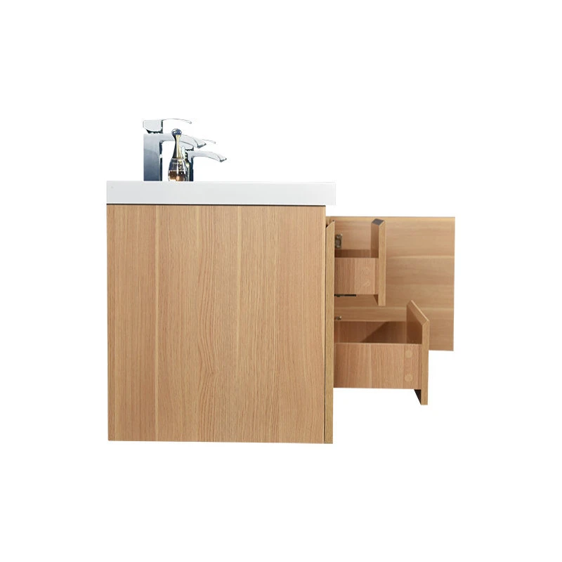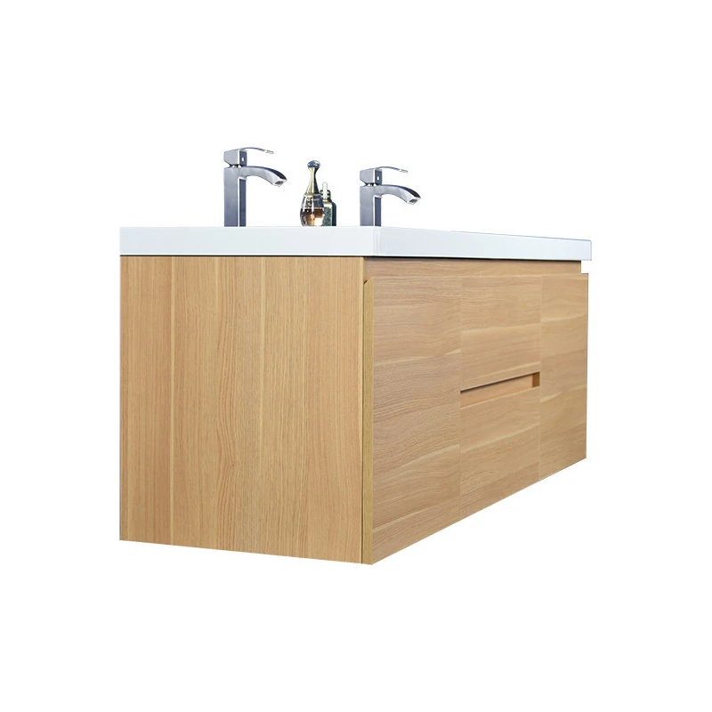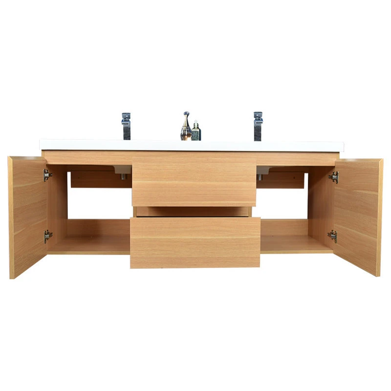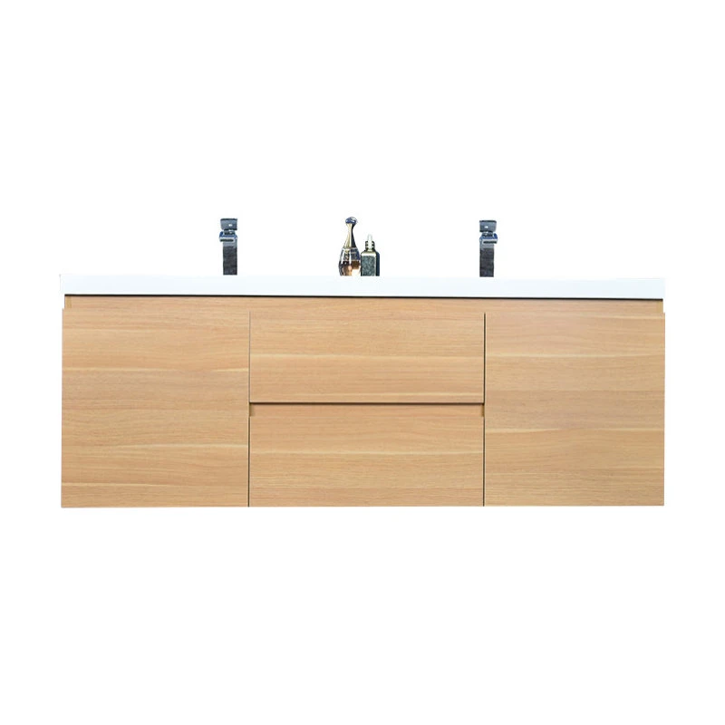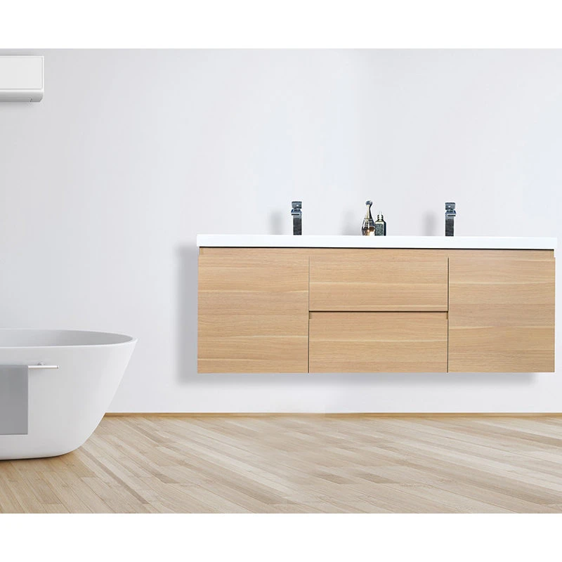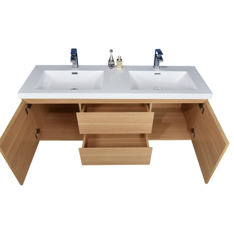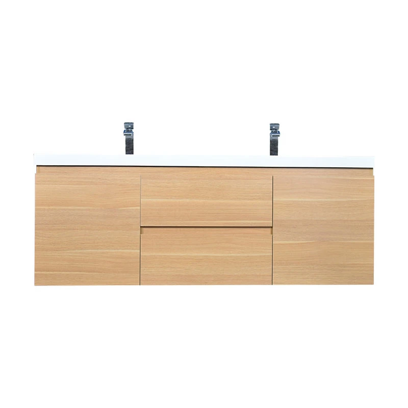 The MOB Wall-Mounted Vanity With Reinforced Acrylic Sink measures 60 inches in width and offers plenty of space and storage. This piece features soft-close, handleless doors and drawers for a sleek, sophisticated look. Its waterproof body is topped a reinforced acrylic countertop and a sink with a rectangular, chrome overflow. This piece is a bold, contemporary statement for your bathroom.