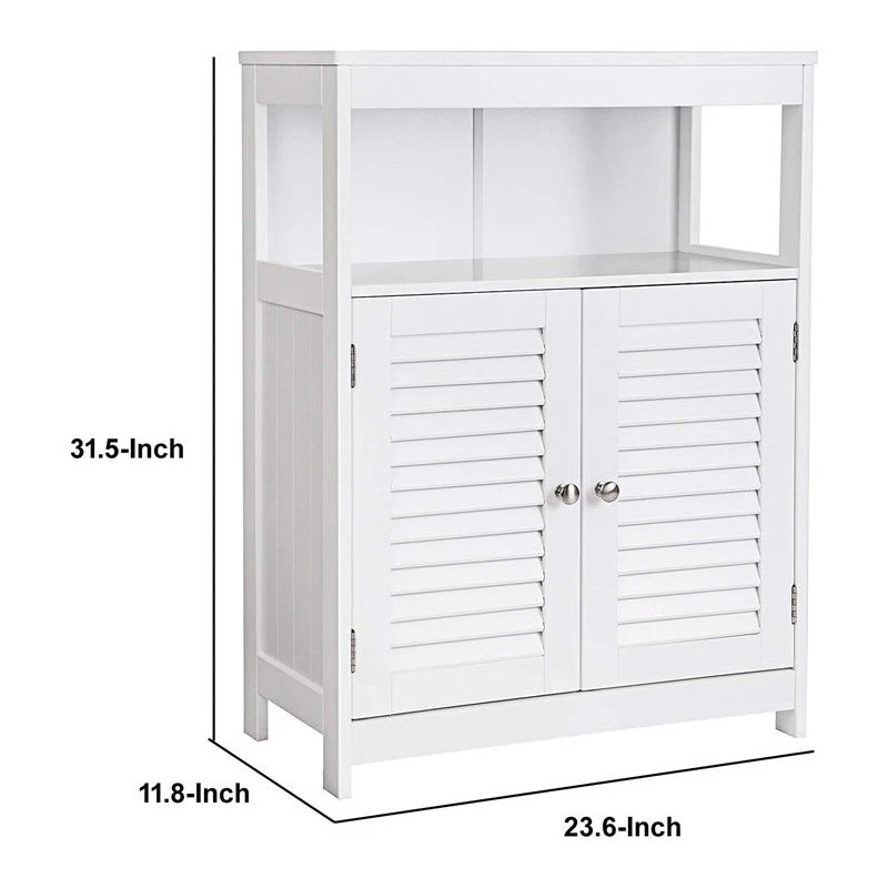 Provide a sophisticated space for your bathroom accessories by bringing in this transitional style bathroom closet, featuring spacious storage with an open shelf and 2 doors which open to reveal an adjustable shelf. Incorporated with plank design on the door, it can be also used as a hallway cabinet and kitchen cabinet.