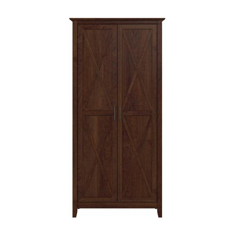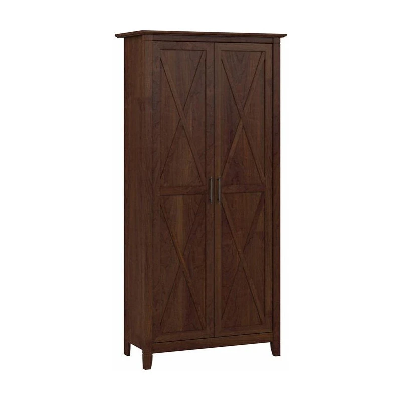 The Bush Furniture Key West Bathroom Storage Cabinet with Doors offers a practical organization solution that gives your home a touch of casual style. This tall cabinet features a versatile design that makes it a perfect choice for use in your bathroom or virtually any other residential space. The Bathroom Cabinet contains two fixed shelves and three adjustable shelves to accommodate towels, toiletries and cleaning supplies of various sizes. Each shelf supports up to 25 pounds, so you’re able to store larger materials and equipment with confidence. Cabinet doors open and close on smooth Euro-style hinges for an effortless reach to contents. Unique X pattern accents convey a casual appearance that works well with cottage, coastal and modern farmhouse style. This tall bathroom cabinet has been tested to meet ANSI/SOHO standards for safety and performance and is backed by a 1 Year Warranty. Materials: Engineered wood and Laminates