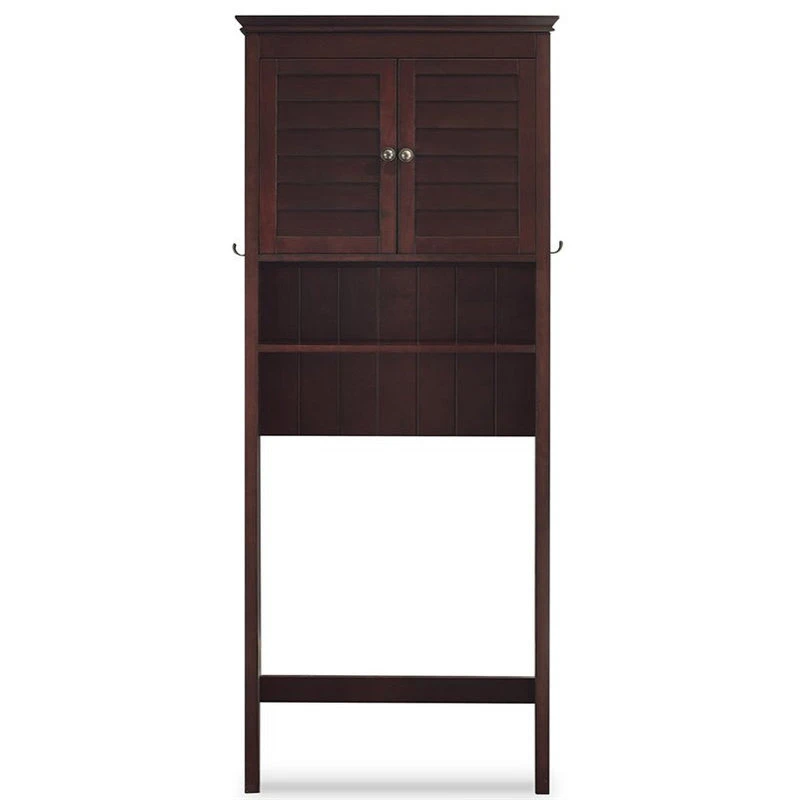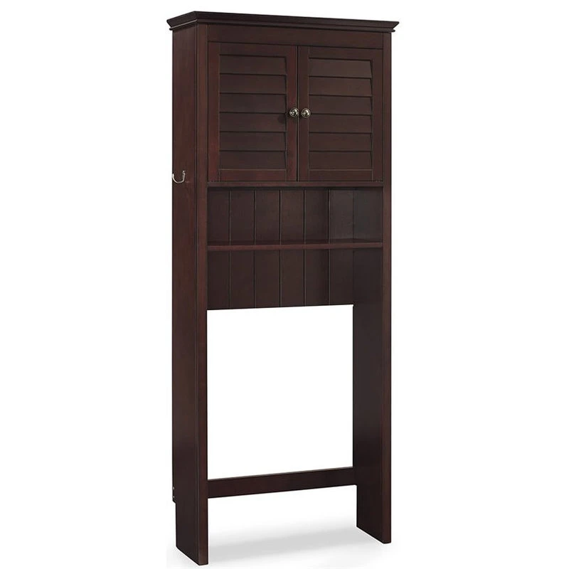 When it comes to storage, no space in the home creates as much challenge as the bathroom. Since they aren’t really “living spaces”, most baths are small and require creativity when it comes to creating room for odds and ends. Let Crosley ease the burden with the new Lydia space saver cabinet. Designed specifically to fit in the rarely used space around the toilet tank, our spacesaver offers a number of clever storage features. Often used items sit at the ready on a spacious open shelf, and clutter neatly disappears inside a large louvered cabinet. There are even handy towel hooks on each side, perfect for hand or bath towels.