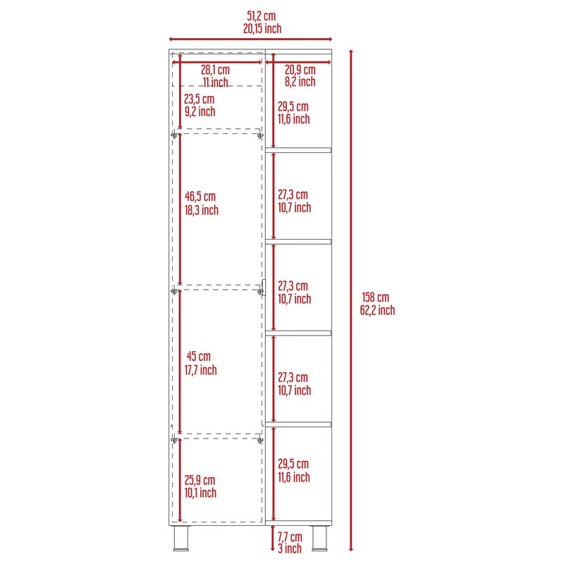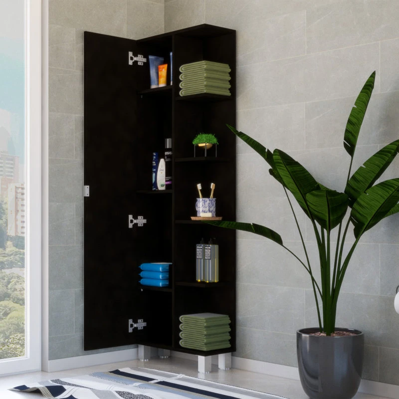 The Venus Cabinet updates the look of any space with modern styling and finish. Multiple shelves and a large covered cabinet give you plenty of storage options. Featuring one large mirror cabinet with four shelves (three of them adjustable) and 5 exterior open shelves (fixed) this product is ideal for your bathroom, kitchen, bedroom or garage. Easy and ready to assemble furniture with full warranty and CARB certification. Product Dimensions: 62.2 Hx20.1 Wx8.5 D