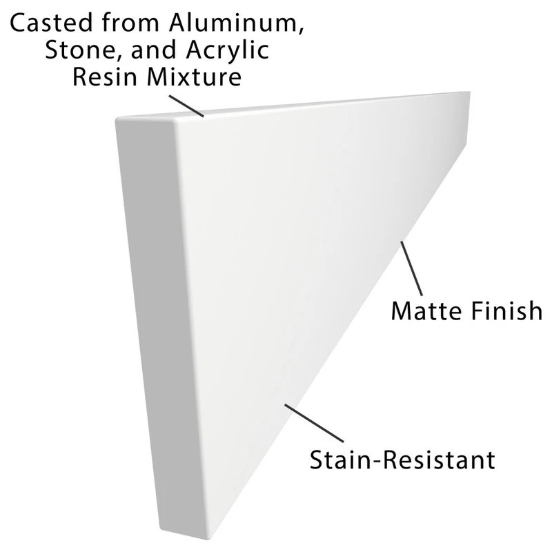 Dyconn Faucet solid surface backsplash is cast out of a mixture of stone, aluminum, acrylic and resin. The stain-resistant material is easy to clean and maintain. Due to its special mixtures, the material can be sanded down for removing scratches and restored to its original matte finish within a matter of seconds.