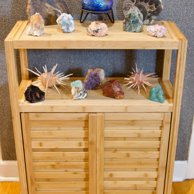 - 2 open back shelves. Eco-friendly sustainable bamboo furniture