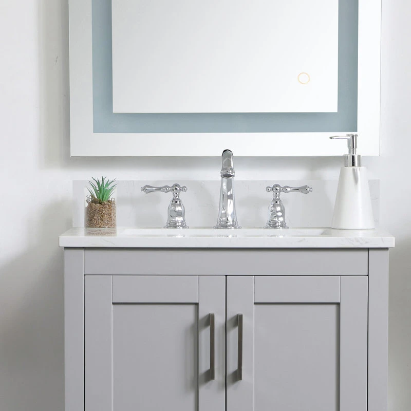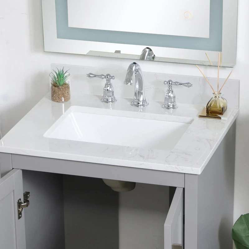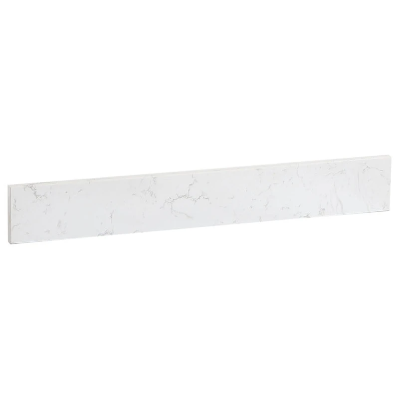 24 inch backsplash in calcatta white designed to protect your bathroom walls from splashes and stains.