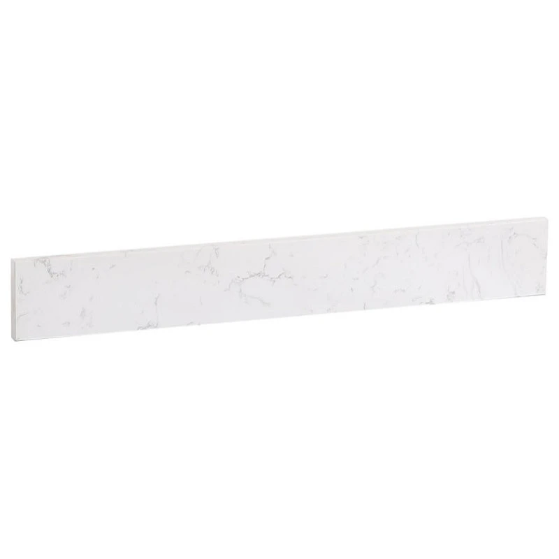 30 inch Backsplash in calacatta white designed to protect your bathroom walls from splashes and stains.