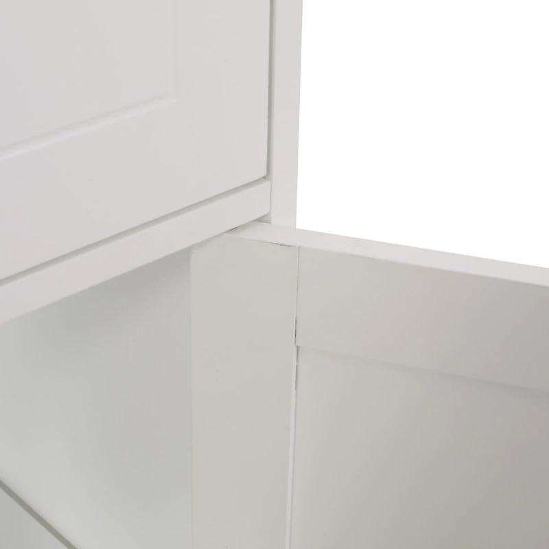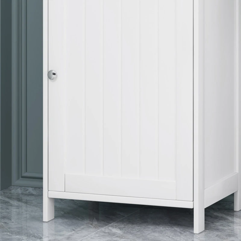 Tuck our charming linen cabinet into your bathroom to enjoy the ample storage space it provides. With a delightfully compact design, our linen cabinet offers generous storage space for all your towels and extra toilet paper rolls without taking up too much room. This durable structure will not only expand the abilities of your bathroom but will also brighten its atmosphere. Featuring a beautiful slatted surface, our storage cabinet brings a clean modern design that gives your bathroom a refreshing look.