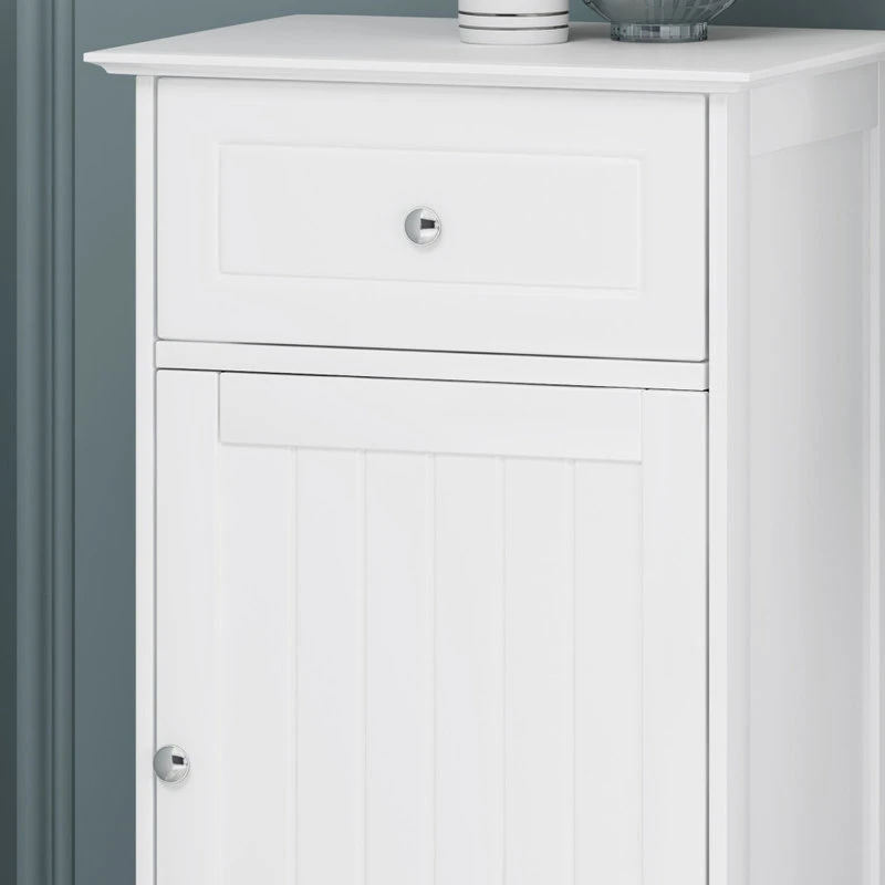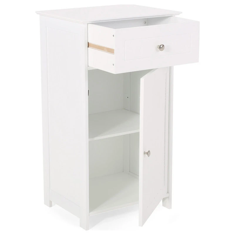 STORAGE SPACE: Our bathroom cabinet offers one cabinet space with a shelf and one drawer to organize a variety of items in a convenient manner. These are finished with sleek silver knobs for convenient access.