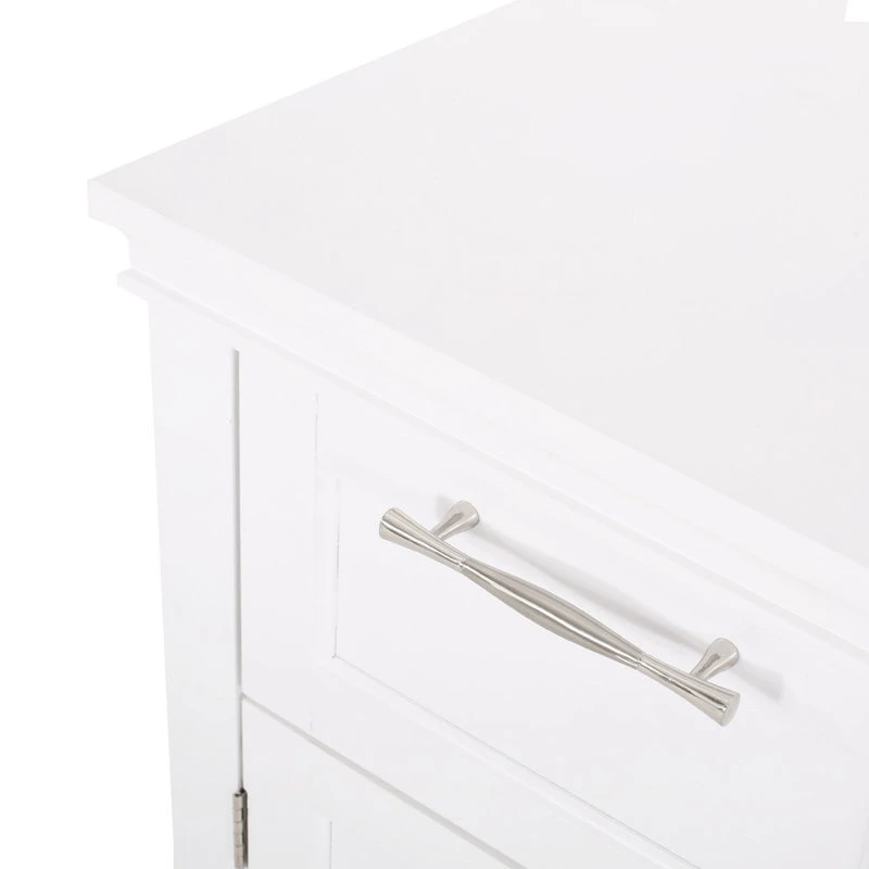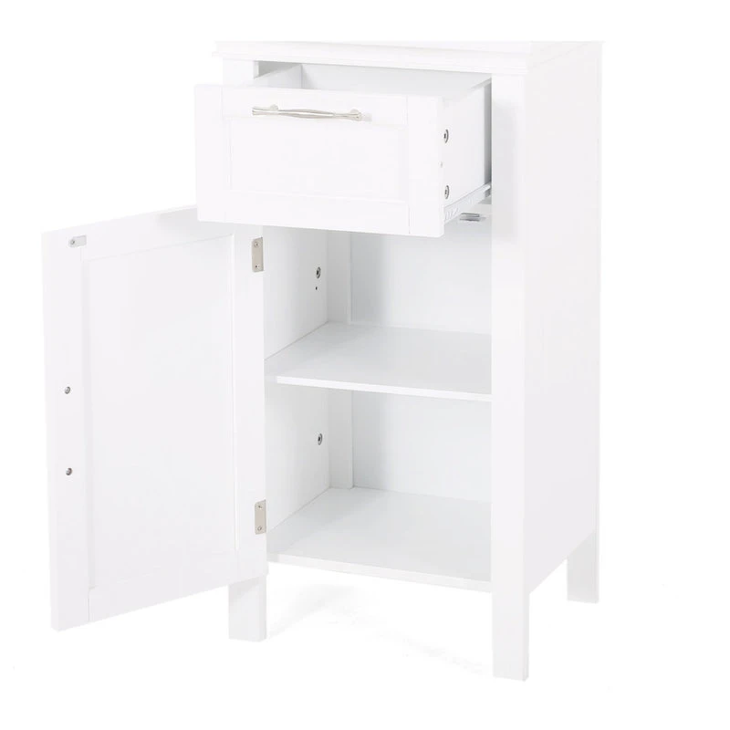 - STORAGE SPACE: Our bathroom cabinet offers one cabinet space with two inner shelves and one drawer to organize a variety of items in a convenient manner. These are finished with sleek silver pull handles for convenient access.