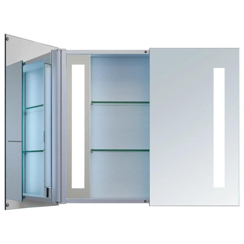 A practical addition to a contemporary bathroom, the Cabinet is designed to be mounted above a vanity unit or sink. The mirrored cupboard measures 30 inches in diameter and offers internal storage space for toiletries and cosmetic items. It has an integrated LED strip on each side that provides clear and bright light for shaving or applying makeup.