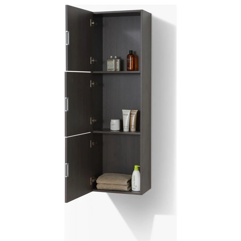 KUBEBATH 18″ Wide By 59″ High Linen Side CabinetThree Doors, High Gloss Gray Oak Finish