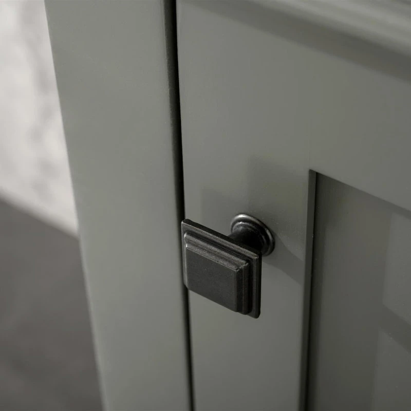 - Pewter Green finish complements cottage, vintage and transitional styles