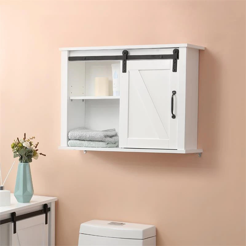 The wall mounted bathroom cabinet gives you plenty of storage space in a compact, farmhouse design. This storage cabinet has a partially enclosed storage with the sliding barn door. It includes two adjustable shelves – one on each side of the wall cabinet. This allows you to create storage spaces that are perfectly sized to store your bathroom accessories. Something you can just never have enough of is storage, and in a room that should be clutter free, clean and organized, bathroom cabinets are must. Place in the bathroom for additional cosmetics, and toiletries storage. The wall mounted storage cabinet is crafted using manufactured wood in a brilliant white finish, and the clean design will complement most designs, while providing a simple storage solution.