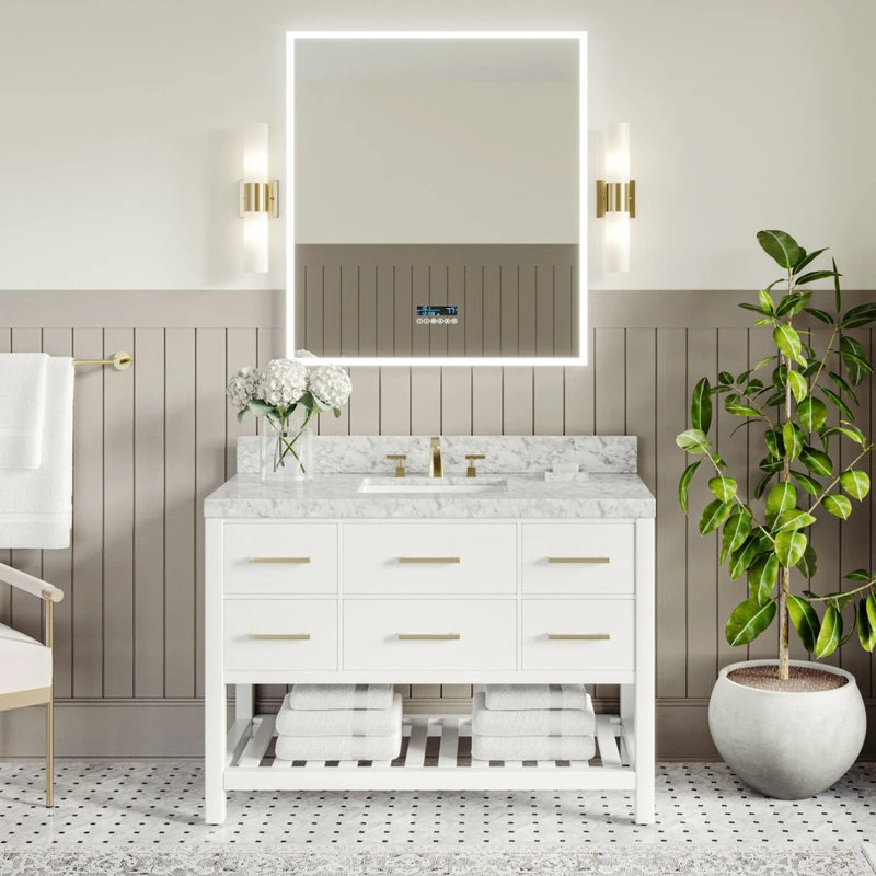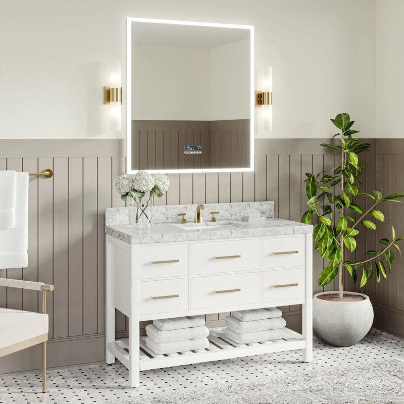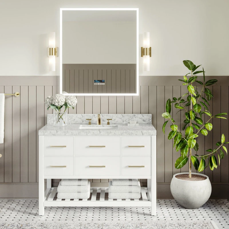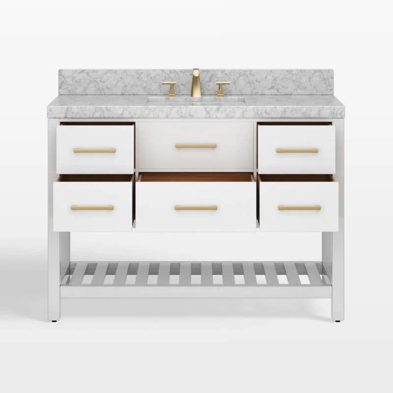 The Arcadia Bathroom Vanity is a transitional piece that pulls in a sense of tranquility to anyone looking for a peaceful yet sophisticated bathroom. You’ll find joy in the solid wood craftsmanship that’s apparent throughout the piece and best seen in the dovetail drawers and built-in legs, while thick natural stone counters and soft-close drawers reinforce that peaceful feeling. A serene bathroom awaits!