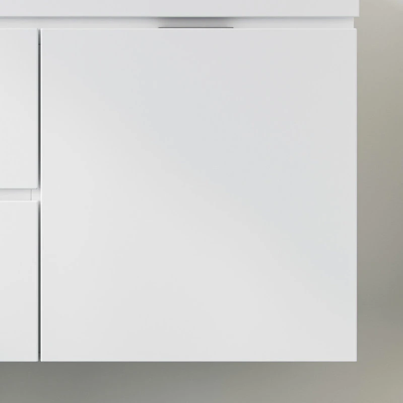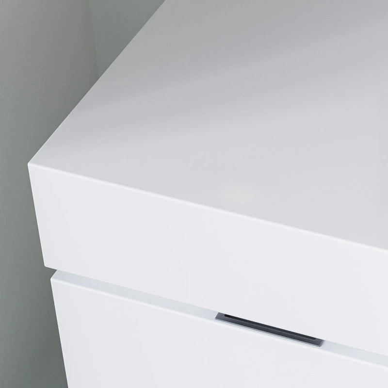 The Boutique bathroom vanity sets the standard in minimal elegance. Hovering just off the floor, this wall-mounted design boasts soft-closing drawers and hidden hinges, while the reinforced acrylic sink flows perfectly into the console for a waterfall look that will please the eye and stand the test of time. Faucet sold separately.