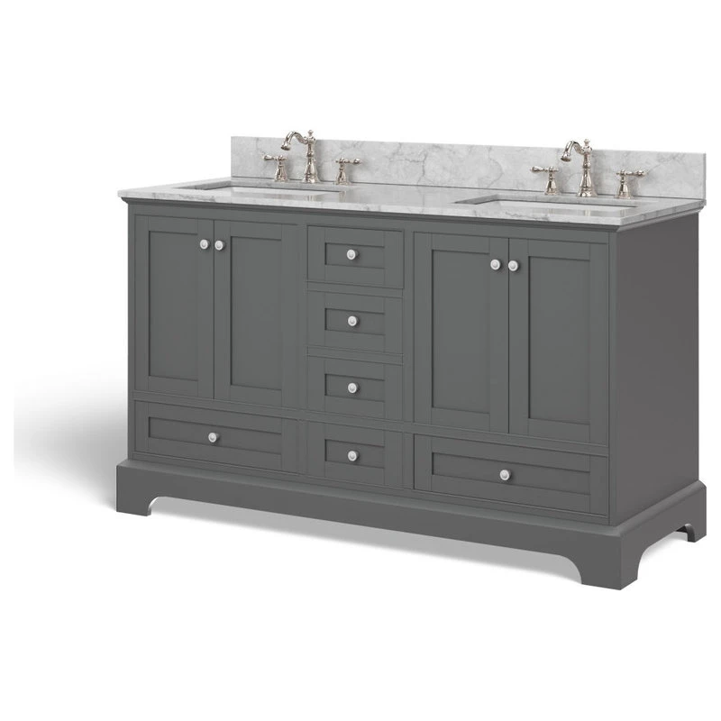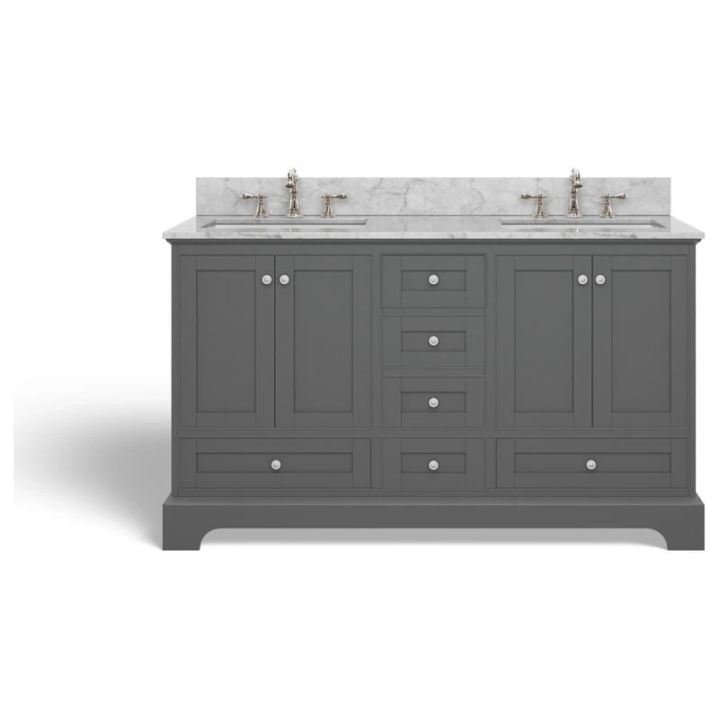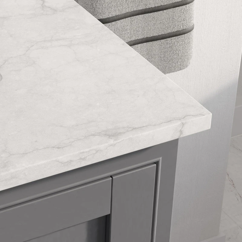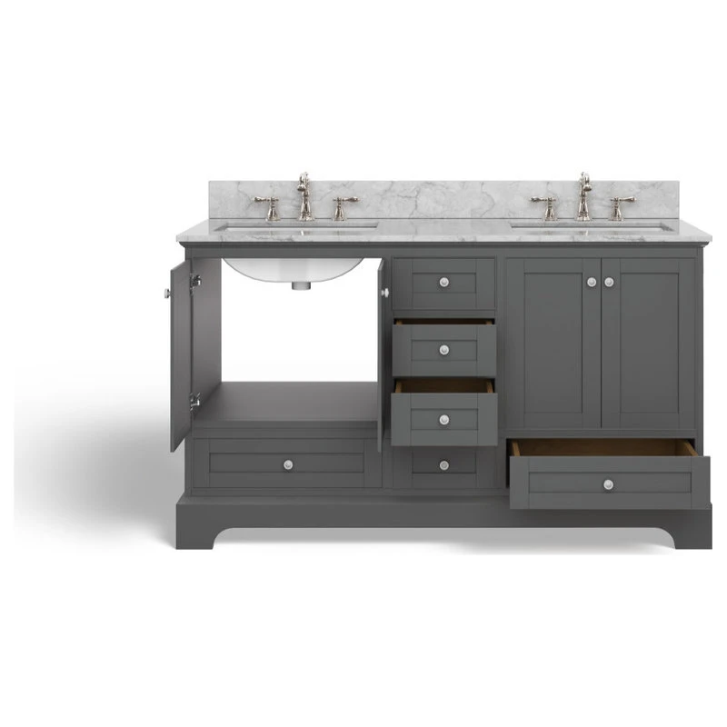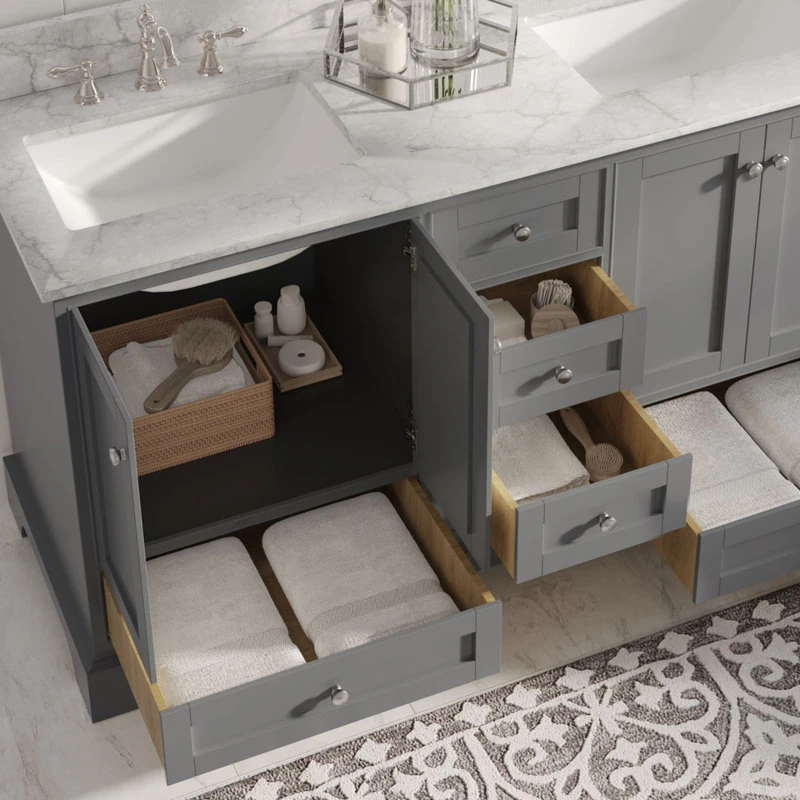 The Cascade Vanity is a transitional piece built with solid wood and natural stone that perfectly balances classic elegance and modern functionality. It’s structured with soft close drawers and cabinets to keep your bathroom tranquil at all times, while the traditional, handcrafted French exterior comes to life with dovetail drawers and durable, built-in legs.