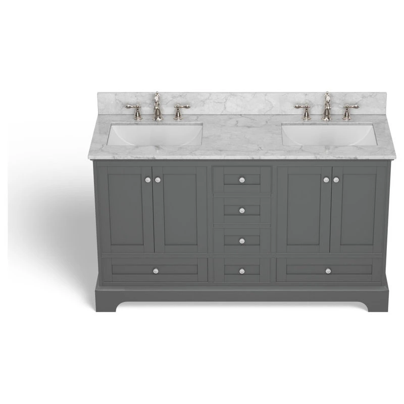 - Imported Italian Cararra white marble top with no front & sides edge seam (1 piece slab vs. 2 pieces with unattractive edge seam)