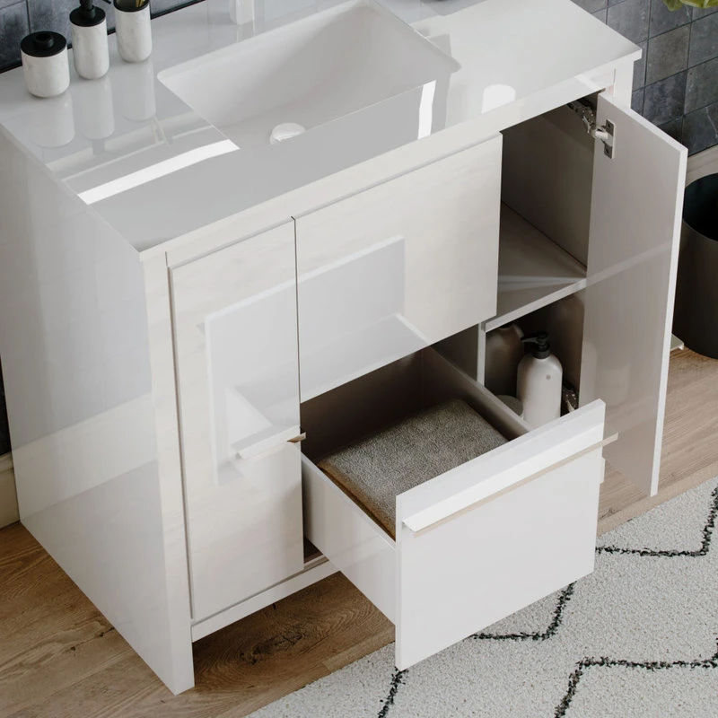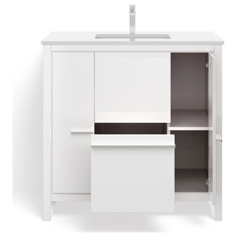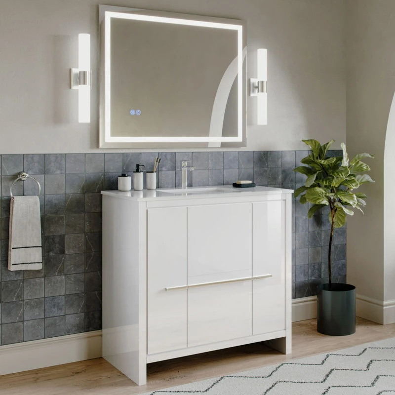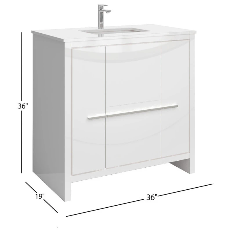 MOD Esconde Bath Vanity, High Gloss White, 36″, Single Sink, Freestanding