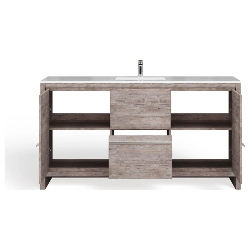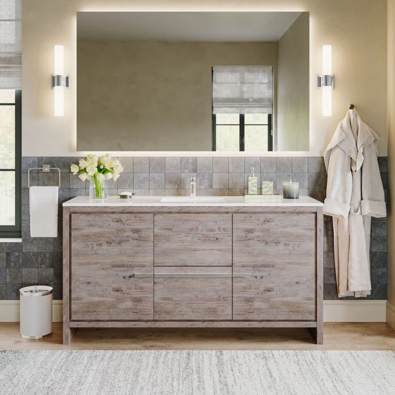 MOD Esconde Bath Vanity, Natural Wood, 60″, Single Sink, Freestanding