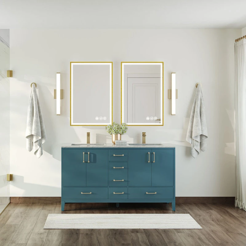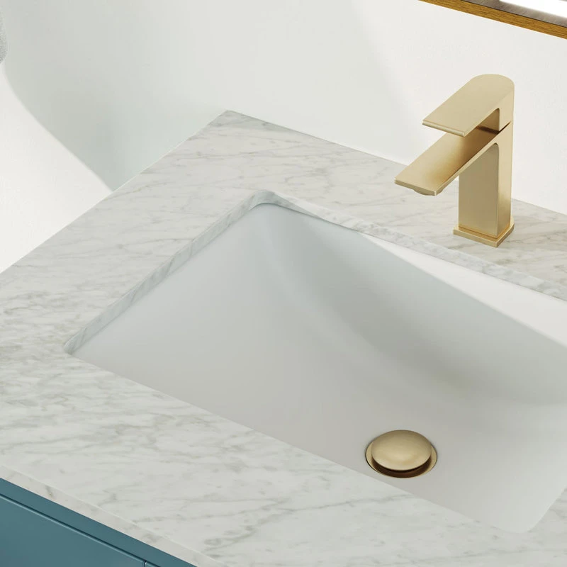The stunning Lagoon bathroom vanity is beautifully built with a gorgeous marble countertop, dressed with golden-toned hardware, and packed with plenty of storage space. From your favorite skincare products to piles of plush towels, this roomy vanity is primed for housing all your in-spa needs. Complete your favorite corner of the house with this bold showstopper, whether you’re starting from scratch or giving your current bathroom a makeover. Your perfect staycation awaits!