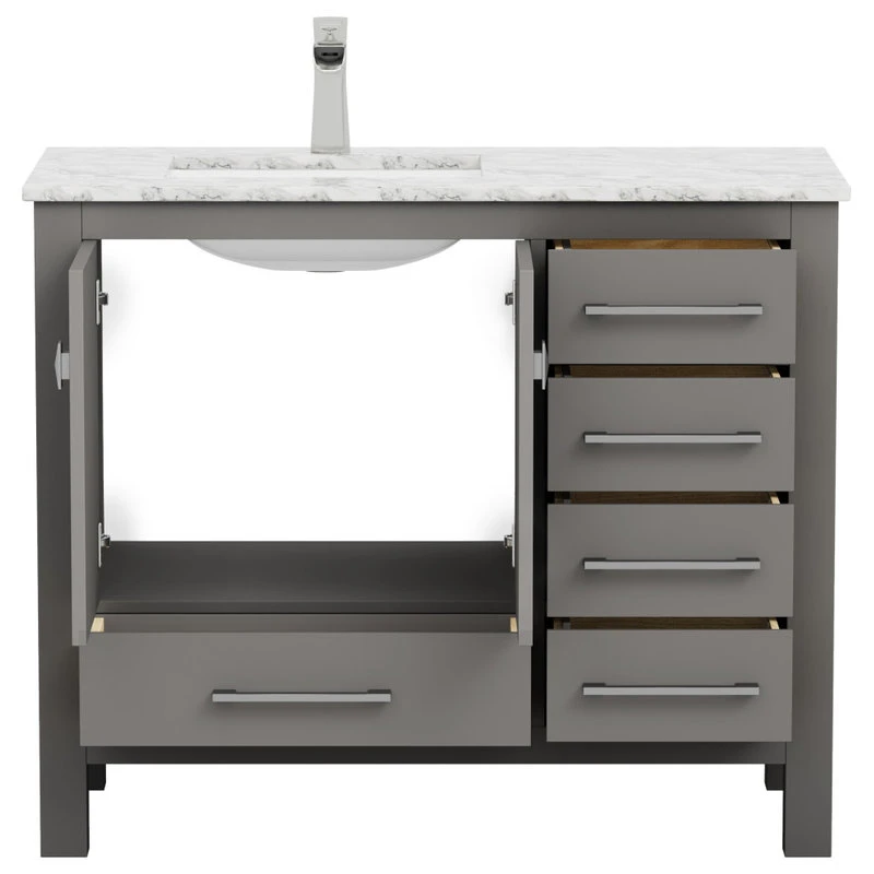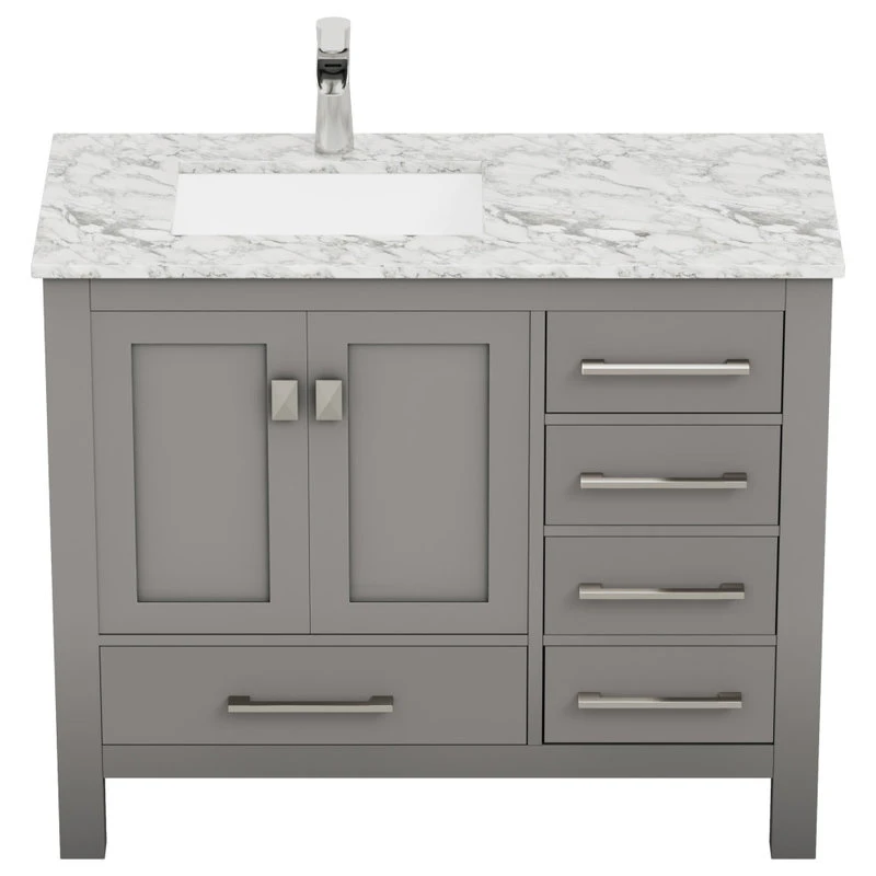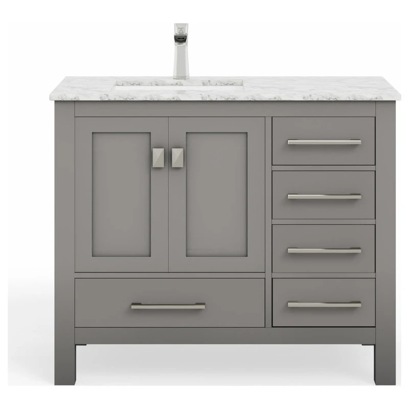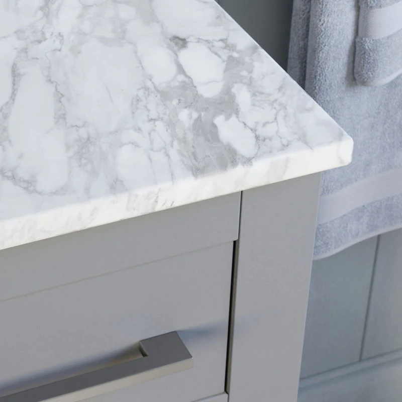 The Ashton bathroom vanity mixes modern clean lines and traditional charisma. With an ample amount of storage space hidden behind multiple soft-closing drawers and doors, the Ashton makes sure not to skimp out on modern-day luxury. Plus, with the help of sturdy natural materials like solid wood and marble countertops, the Ashton is crafted to last for however long you need it (and more).