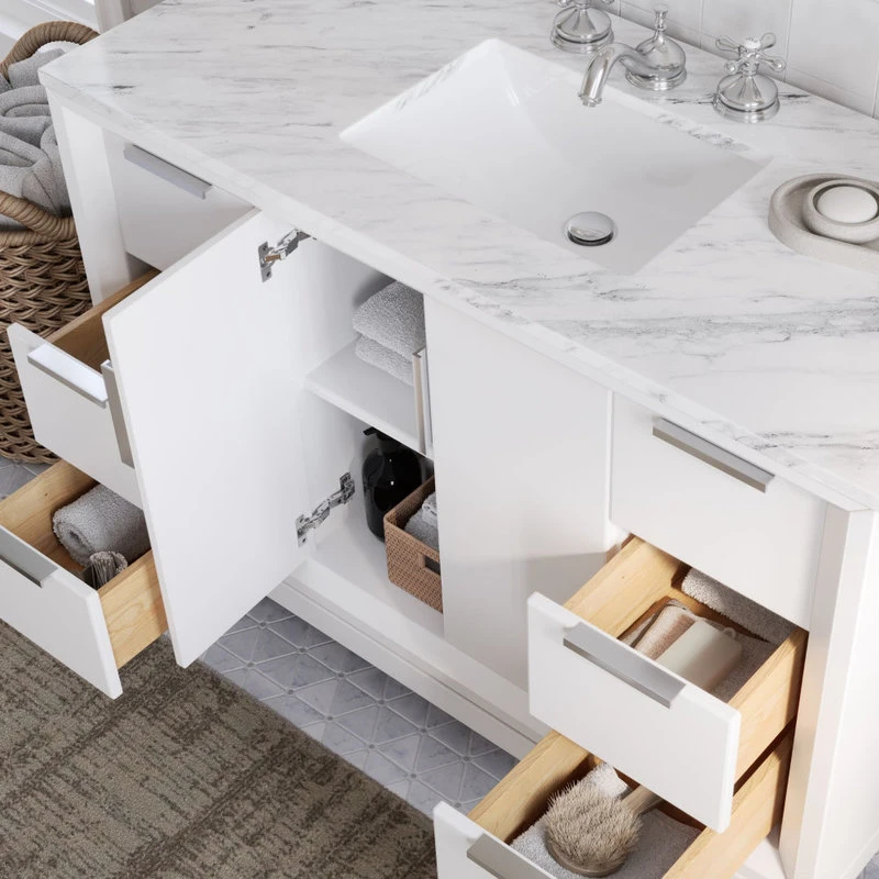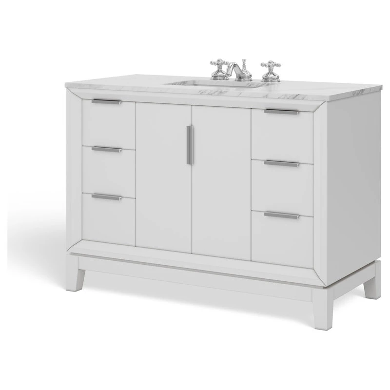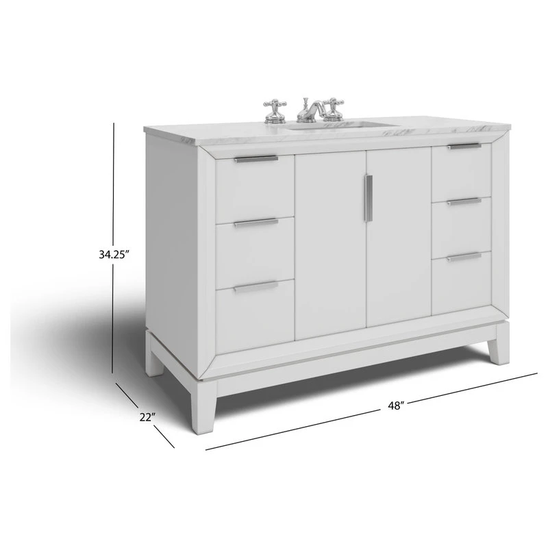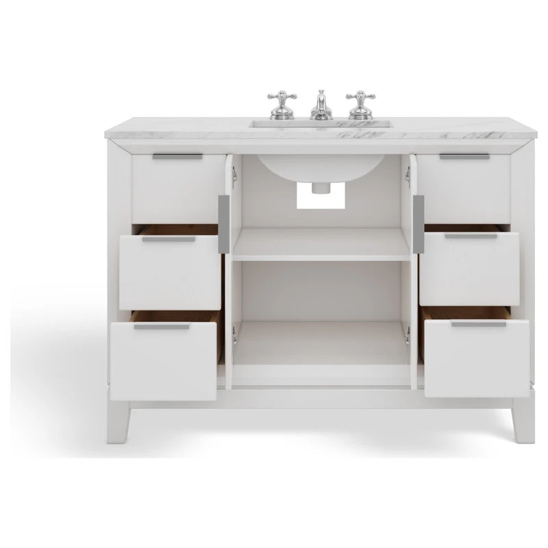 SKU: VEL048CWPW00 Category: Bathroom Vanities Tags: Bathroom vanity, Carrara marble, Single sink, Soft close, Solid hardwood
