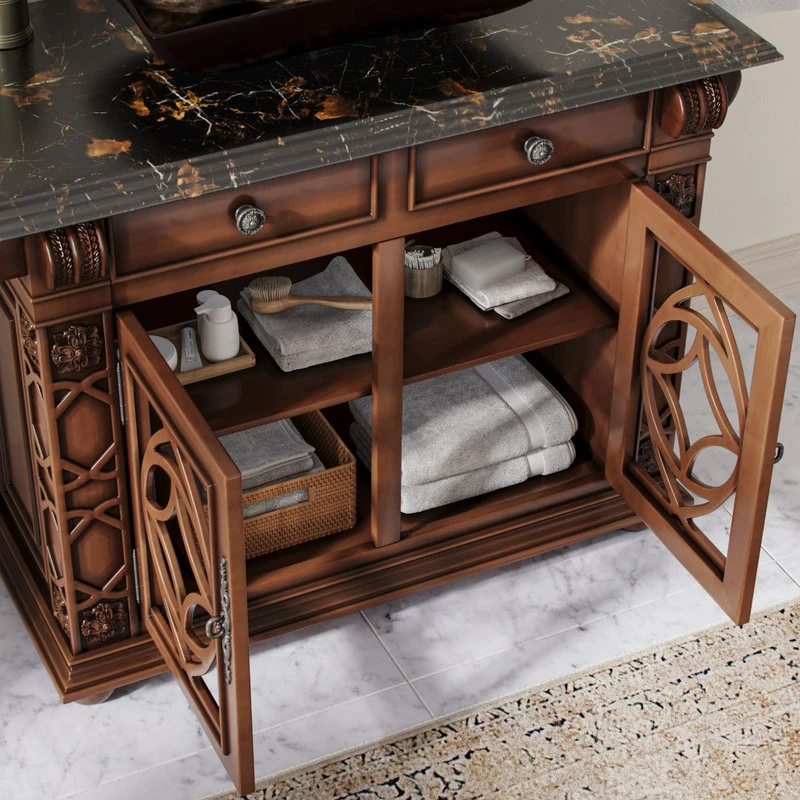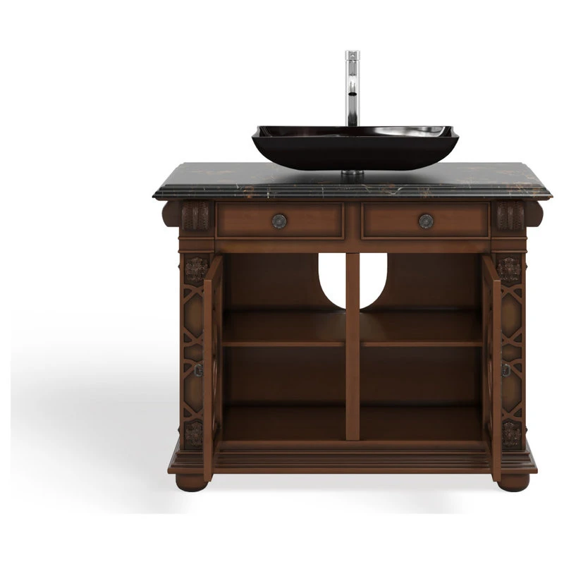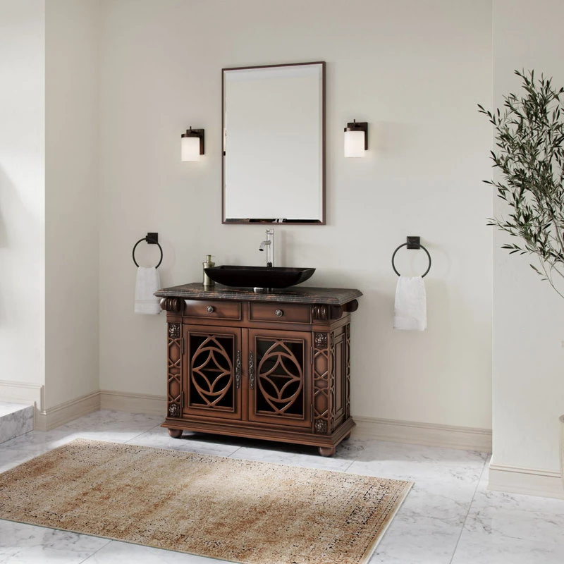 Hailing from the halls of royalty, the Ludlow is as grand as it gets. Its intricate carvings are the epitome of exquisite. Its glass vessel sink is nothing short of stunning. Its color palette? Brown, gold, classically cordial. Taking inspiration from traditional bathroom vanities, this cherry-finished centerpiece features a unique set of sculpted doors which offer a glimpse at what’s within. If you’re after something with an old soul to match your own, look no further than the Ludlow.