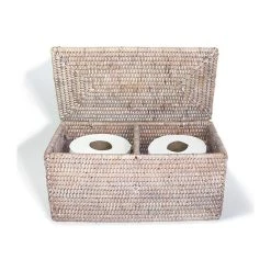 Matahari Incorporated White Rattan Double Toilet Paper Holder