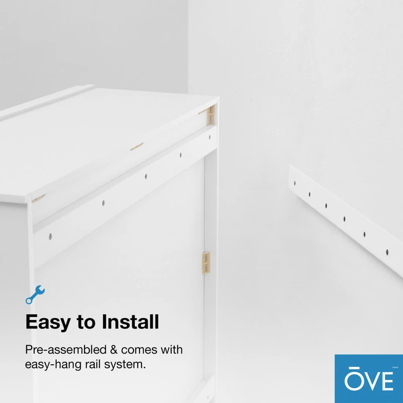- Easy to install – Cabinet comes pre-assembled with easy-hang rail system included for quick and simple installation