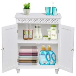 Imtinanz Beautiful White Wood Bathroom Storage Floor Cabinet