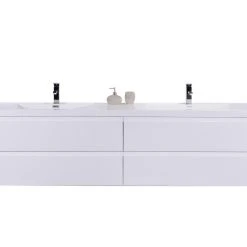 Bathroom Vanity Wholesale INC. MOB 72″ Double Sink Wall Mounted Vanity With Acrylic Sink, High Gloss White