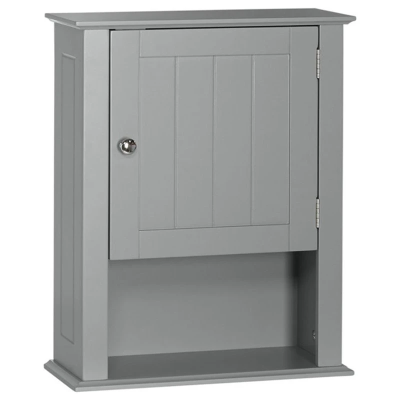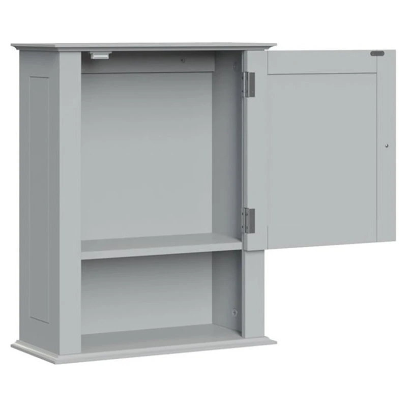 The RiverRidge Home Ashland Collection Single Door Wall Cabinet is the perfect hide-away for toiletries and other bathroom items for a fresh and clean appearance. Additional dimensions: interior fixed shelf: 14.38-in. W x 5.75-in. D x 12.31-in. H, and exterior open shelf: 14.38-in. W x 5.75-in. D x 12.31-in. H.