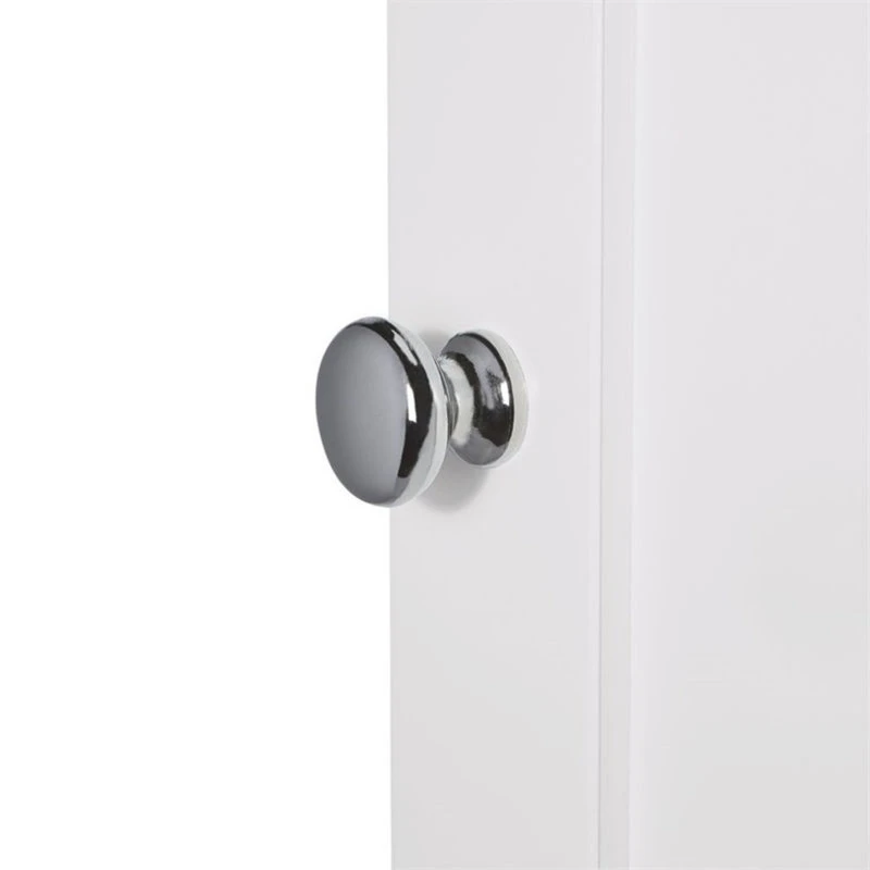 - Features arched side panels, mirrored knobs and cabinet doors with inset beadboard styling for a clean and classic look