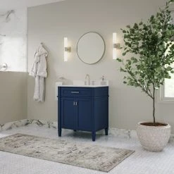 MOD The Drew Bathroom Vanity, Navy Blue, 30″, Single Sink, Freestanding