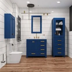 Water Creation Madison 24″ W X 33″ H X 8″ D Bath Storage Wall Cabinet, Monarch Blue