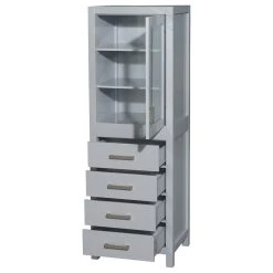 Wyndham Collection Sheffield 24″ Linen Tower, Gray, Shelved Cabinet Storage, 4 Drawers