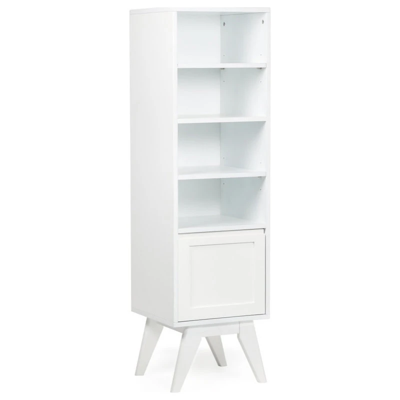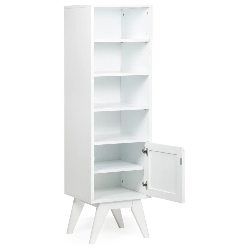Create functional storage space in your bathroom with the stylish Draper Mid Century Bath Storage Tower. The cabinet’s slender design has a small footprint, making it ideal for small bathrooms or bathrooms without linen closets. Keep toiletries neatly tucked away behind the tempered glass door and bottom closed cabinet. The four open shelves are perfect for towels and displayable bathroom essentials.