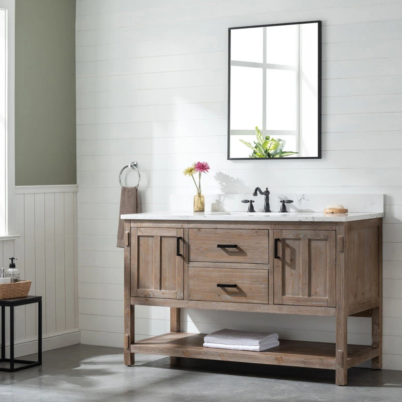 Urban Furnishing Harvey Farmhouse Bathroom Sink Vanity Brown Spruce, 54″