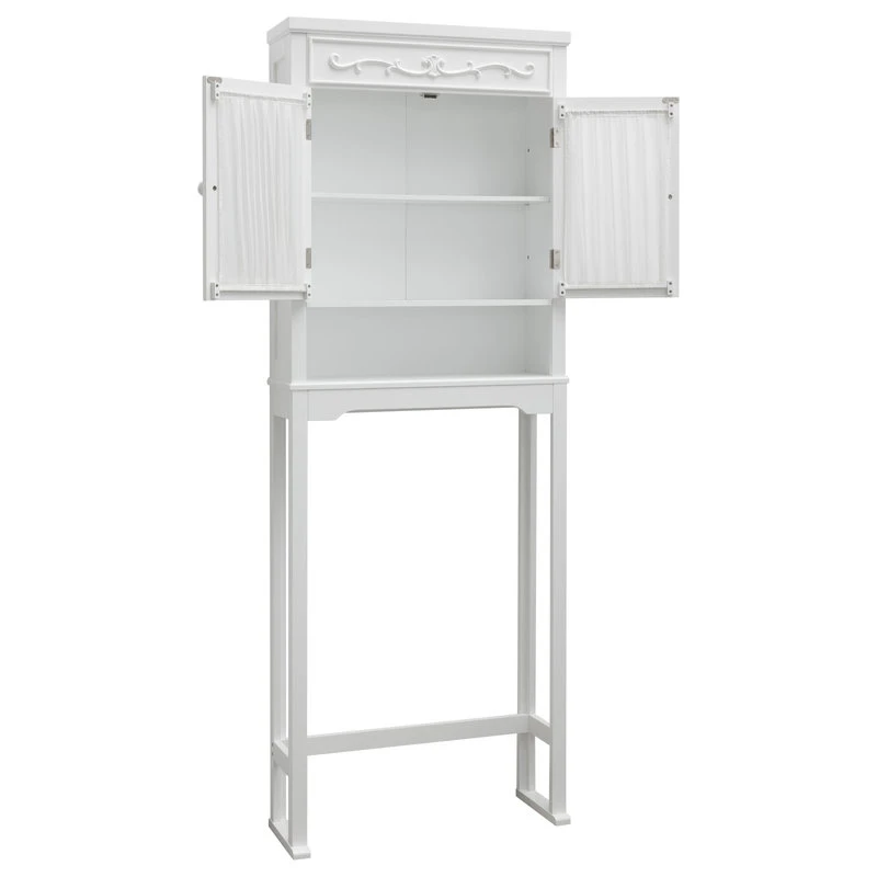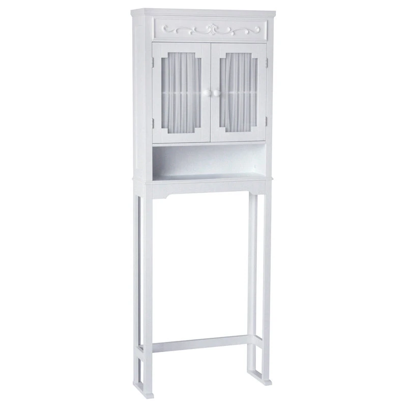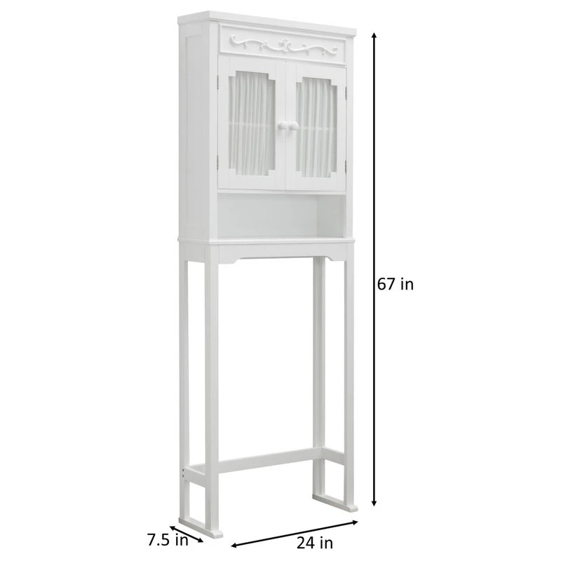 Upgrade your home storage while adding classic decor with the Elegant Home Fashions Lisbon Wooden Space Saver with Drapery-Lined Doors. This decorative cabinet features a white finish with decorative molding and drapery-lined, glass-paneled doors for a beautiful addition to your space. The included fixed open shelf and adjustable interior shelf help to reduce clutter and keep your home tidy. Constructed from durable engineered wood, this space saver is built to provide you with long-lasting organization. Easy, step-by-step instructions and all of the hardware needed for installation are included for quick assembly. Purchase this stylish cabinet alone or with other items from the Lisbon collection for a cohesive, updated look. The Elegant Home Fashions Lisbon Wooden Space Saver with Drapery-Lined Doors measures 7.5″ x 24″ x 67″ to provide accessible storage without taking up too much space in your bathroom.
