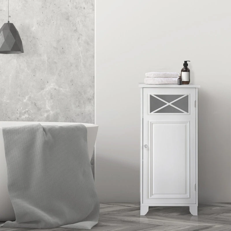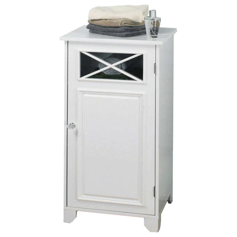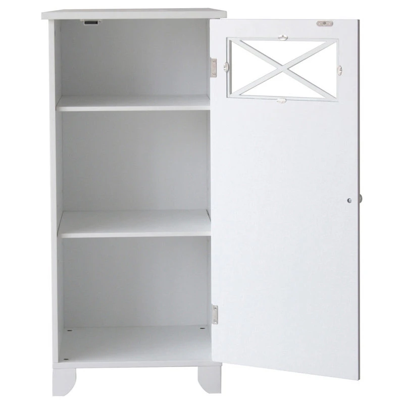 Upgrade your home storage while adding classic decor with the Elegant Home Fashions Dawson Wooden Floor Cabinet with Cross Molding. This decorative cabinet features a white finish with cross molding on the glass-paneled door and a clear knob for a beautiful addition to your space. The included fixed shelf and adjustable shelf help to reduce clutter and keep your home tidy. Constructed from durable engineered wood, this floor cabinet is built to provide you with long-lasting organization. Easy, step-by-step instructions and all of the hardware needed for installation are included for quick assembly. Purchase this stylish cabinet alone or with other items from the Dawson collection for a cohesive, updated look. The Elegant Home Fashions Dawson Wooden Floor Cabinet with Cross Molding measures 13″ x 15″ x 32″ to provide accessible storage without taking up too much space in your living area or bathroom.
