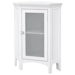 Upgrade your home storage while adding classic decor with the Elegant Home Fashions Madison Wooden Floor Cabinet with Glass Door. This decorative cabinet features a white finish with arched bottom skirting, a glass door, and chrome knobs for a beautiful addition to your space. The included fixed interior shelf helps to reduce clutter and keep your home tidy. Constructed from durable engineered wood and tempered glass, this floor cabinet is built to provide you with long-lasting organization. Easy, step-by-step instructions and all of the hardware needed for installation are included for quick assembly. Purchase this stylish cabinet alone or with other items from the Madison collection for a cohesive, updated look. The Elegant Home Fashions Madison Wooden Floor Cabinet with Glass Door measures 17″ x 24.75″ x 32″ and fits easily into corners to provide accessible storage without taking up too much space in your living area or bathroom.