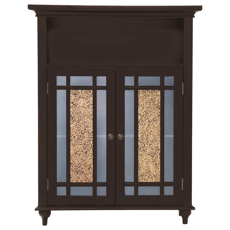 Upgrade your home storage while adding classic decor with the Elegant Home Fashions Windsor Wooden Floor Cabinet with Glass Mosaic Doors. This decorative cabinet features a timeless dark espresso finish with amber glass mosaic doors, beveled trim, and rubbed bronze-finished knobs for a beautiful addition to your space. The included adjustable shelf makes this cabinet functional and customizable to suit your storage needs. Constructed from durable engineered wood, this storage unit is built to provide you with long-lasting organization. Easy, step-by-step instructions and all of the hardware needed for installation are included for quick assembly. Purchase this stylish floor cabinet alone or with other items from the Windsor collection for a cohesive, updated look. The Elegant Home Fashions Windsor Wooden Floor Cabinet with Glass Mosaic Doors measures 12″ x 26.5″ x 34″ to provide accessible storage without taking up too much space in your living area or bathroom.